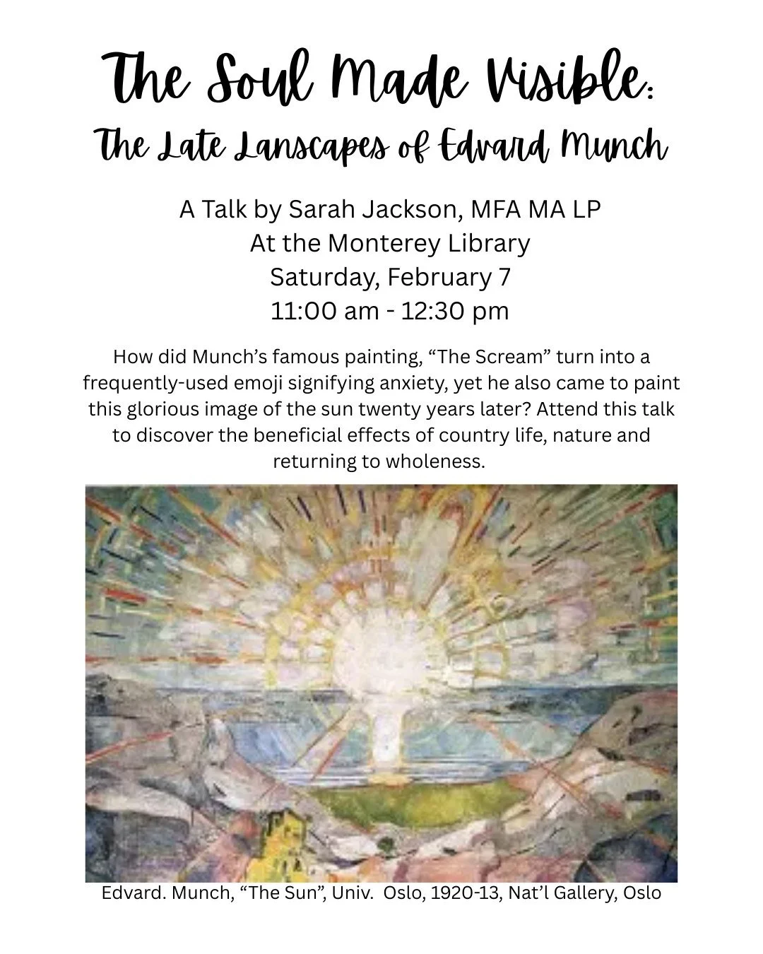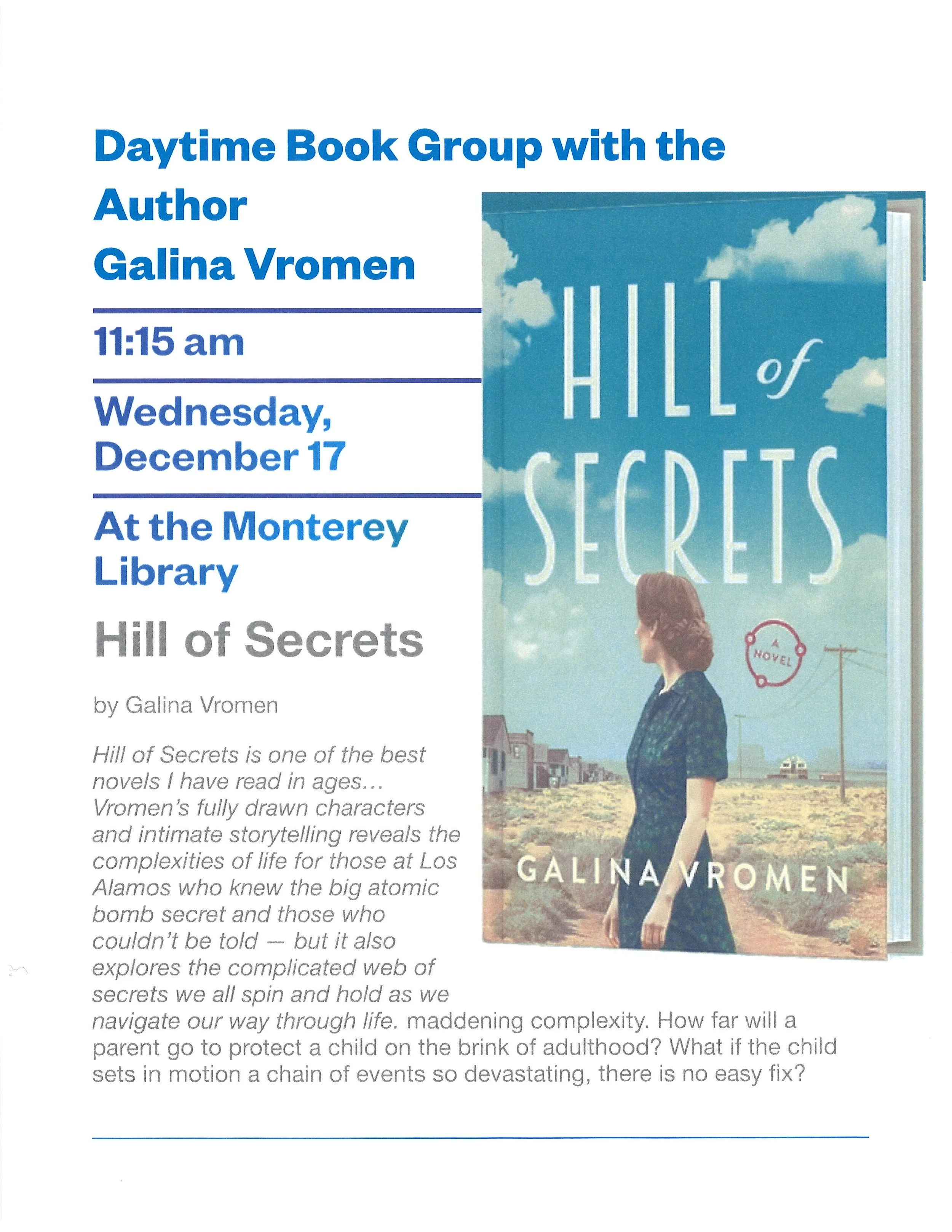 Check our calendar for art openings, meetings, book sales and other happenings at the Monterey Library